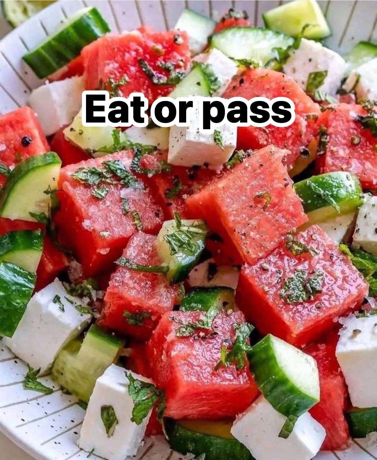 Watermelon salad with cucumber salad and feta
