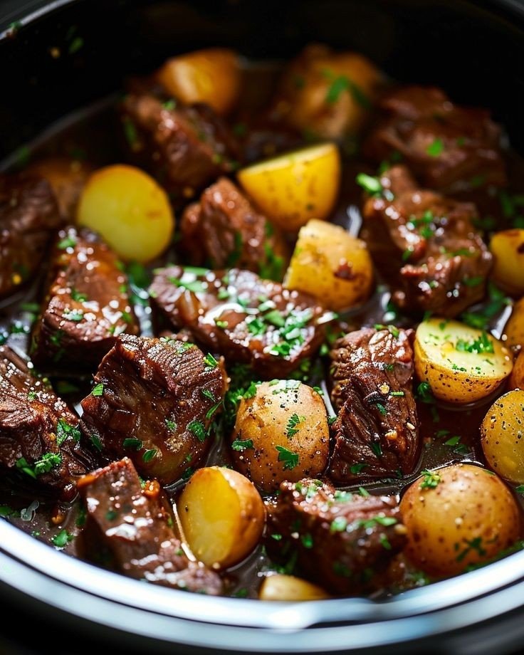 Slow Cooker Garlic Butter Beef Bites Potatoes