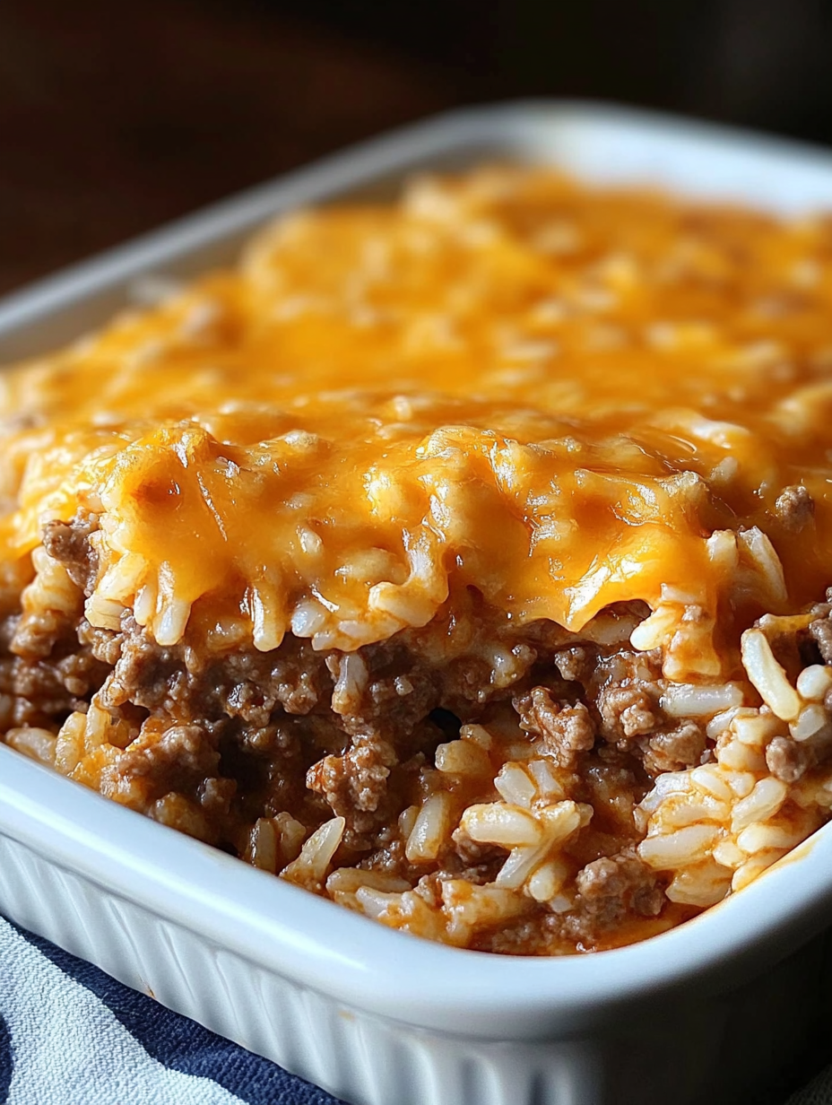Cheesy Ground Beef Rice Casserole