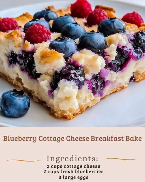 A nutritious and delicious baked dish featuring cottage cheese and blueberries, perfect for breakfast or a snack.