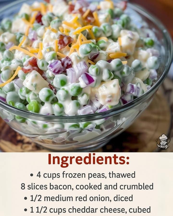 Looking for the ultimate side dish that brings together creamy comfort, fresh crunch, and savory goodness in every bite? Look no further than the timeless Classic Pea Salad! This retro-inspired favorite has stood the test of time—and for good reason. With bursts of sweetness from tender green peas, the salty crisp of bacon, sharp cheddar cheese, and the subtle bite of red onion, all tossed in a silky, tangy dressing made of mayo and sour cream—it’s a flavor-packed dish that complements just about any meal.