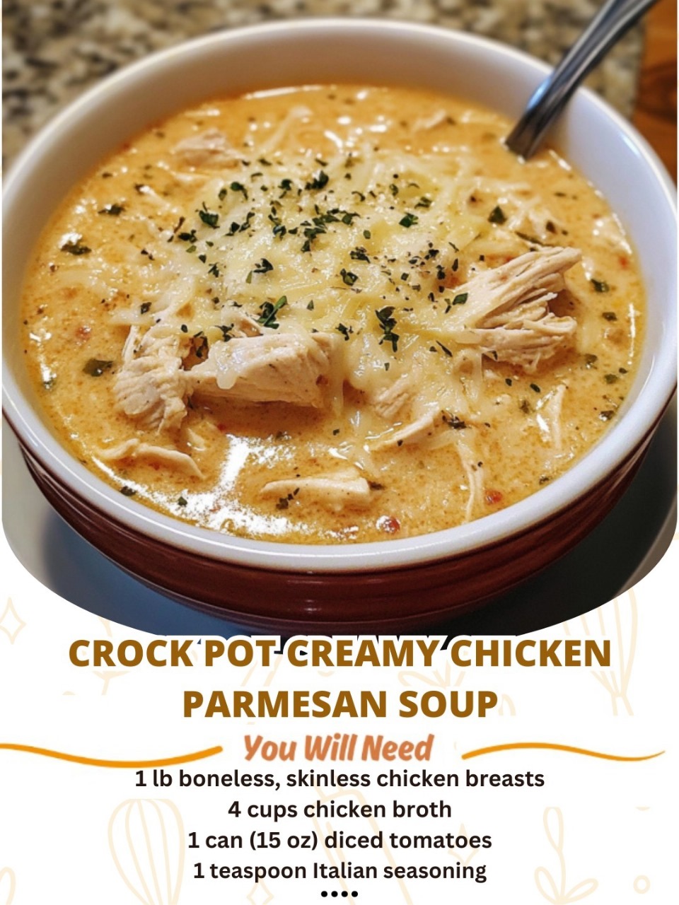 Here’s a recipe for Crock Pot Creamy Chicken Parmesan Soup, a comforting, flavorful dish that’s easy to prepare and perfect for cozy nights! 🍲🧀✨