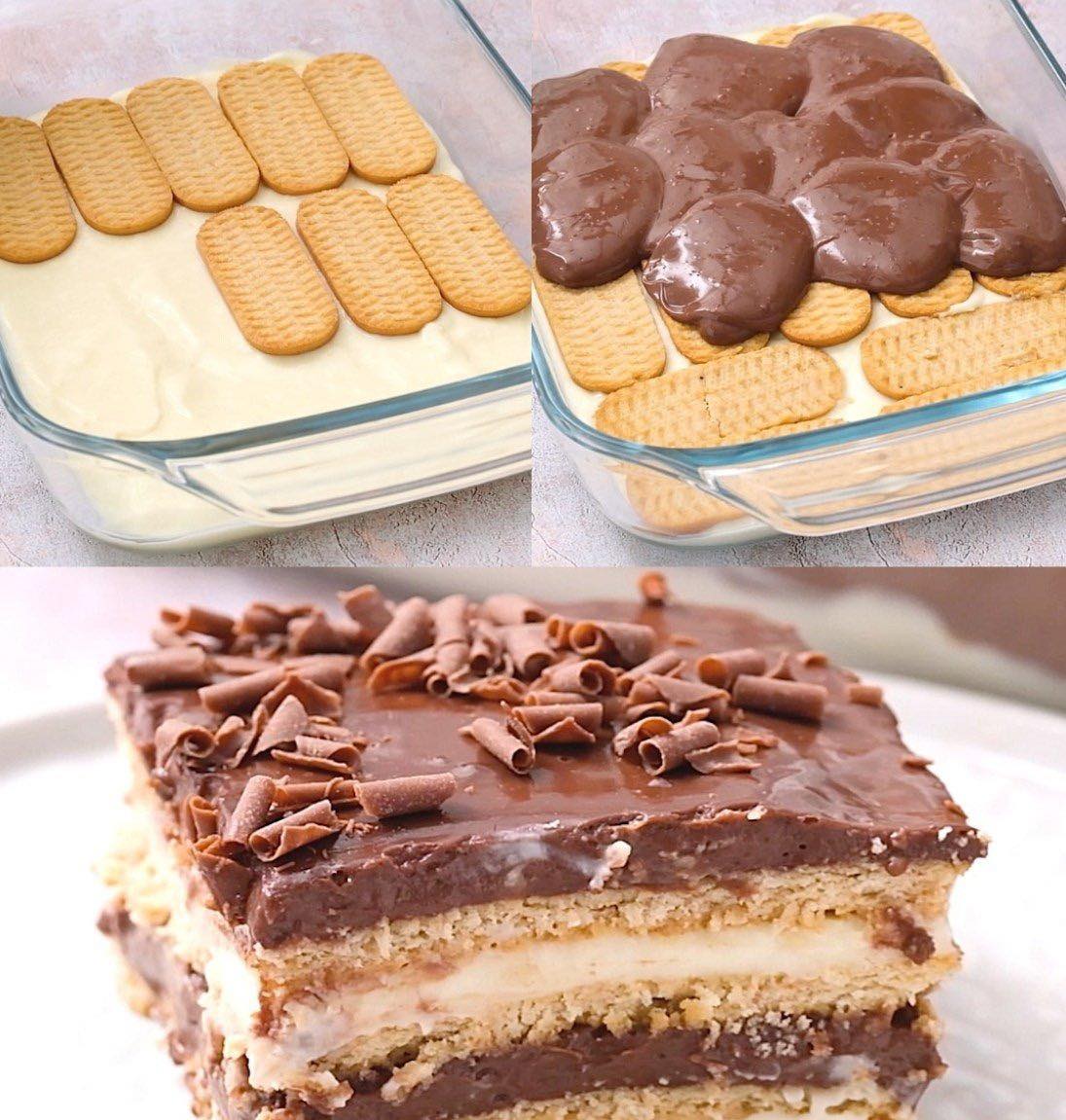 Dessert di budino a strati con biscotti al cioccolato: lo adoreranno tutti!