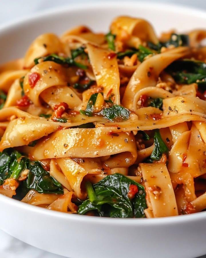 Herbed Italian Drunken Noodles with Spinach