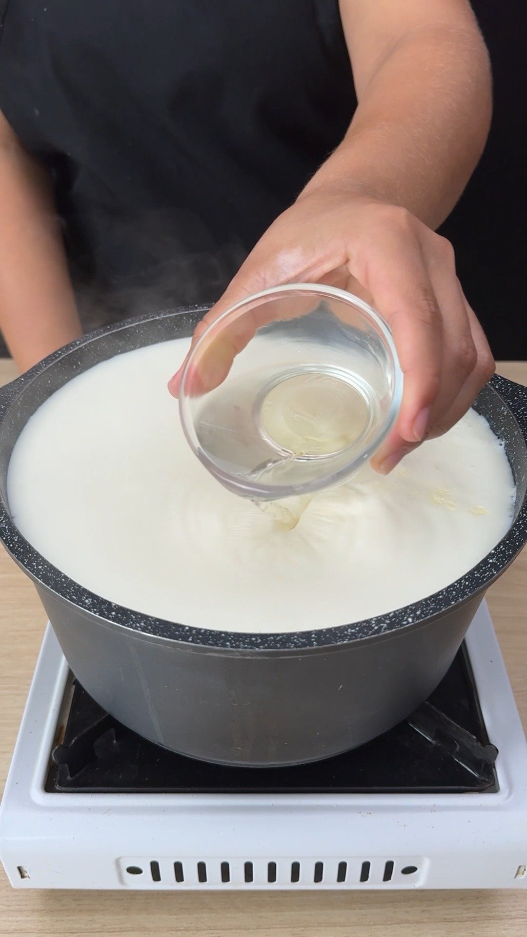 Get ready to be amazed! In this recipe, I’ll show you how to make creamy, delicious homemade cream cheese using a simple technique – adding vinegar to boiling milk. I’m using 3 liters of milk here, and I’ll add ½ cup of vinegar once the milk is boiling (but the heat is off!). We’ll stir it all together with a spatula until the milk curdles. Don’t forget to comment and let me know where you’re watching from – we’ll give you a shout-out in the next video!