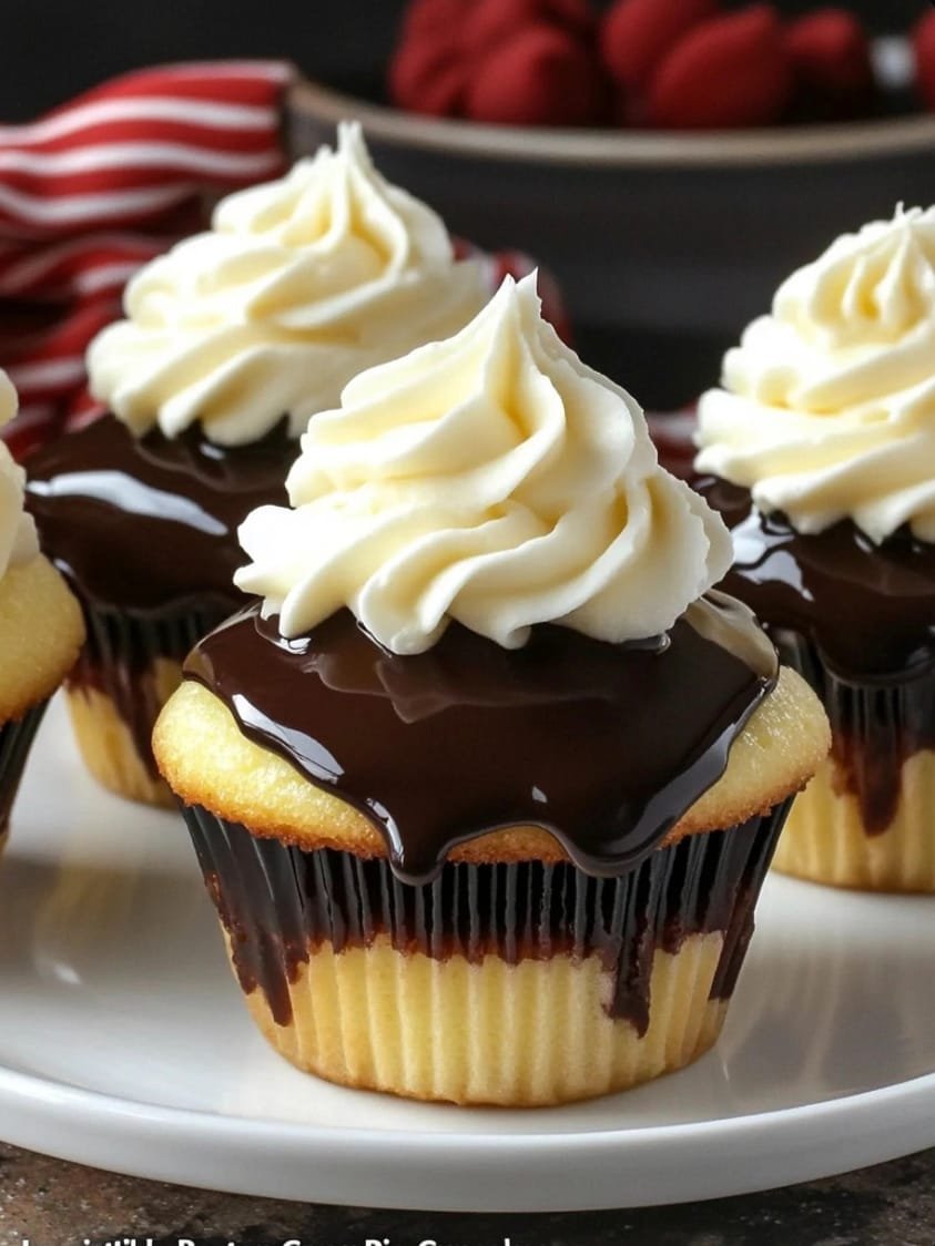 These Irresistible Boston Cream Pie Cupcakes are a delightful twist on the classic dessert! Enjoy all the flavors of a Boston cream pie in a convenient, handheld treat. Fluffy vanilla cupcakes are filled with rich pastry cream and topped with luscious chocolate ganache – pure creamy, chocolatey goodness in every bite! Perfect for parties, gatherings, or a delicious anytime treat.