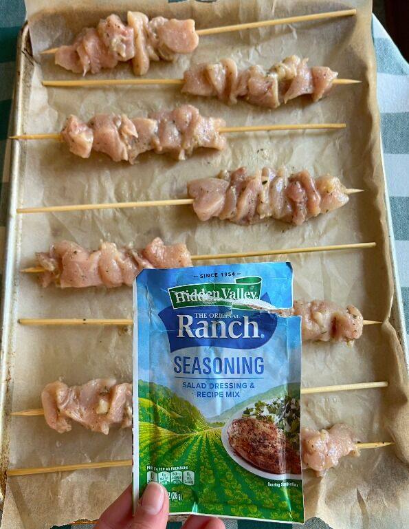 These simple and flavorful chicken skewers are coated in a zesty ranch seasoning and baked until tender, perfect for a quick and easy meal