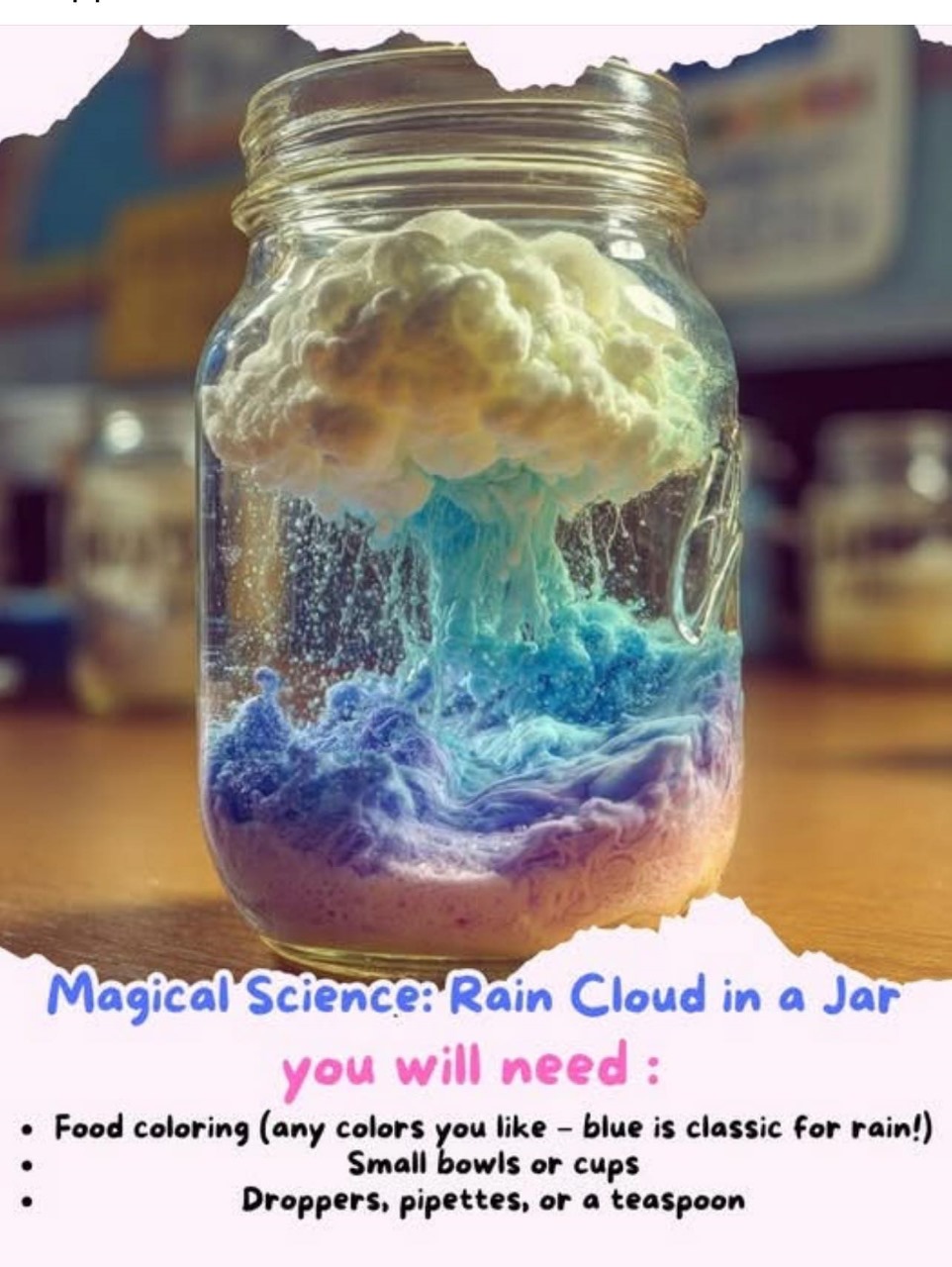 Food coloring (any colors you like – blue is classic for rain!)