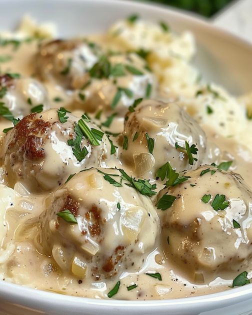 Creamy Swedish meatballs are traditionally served with mashed pota