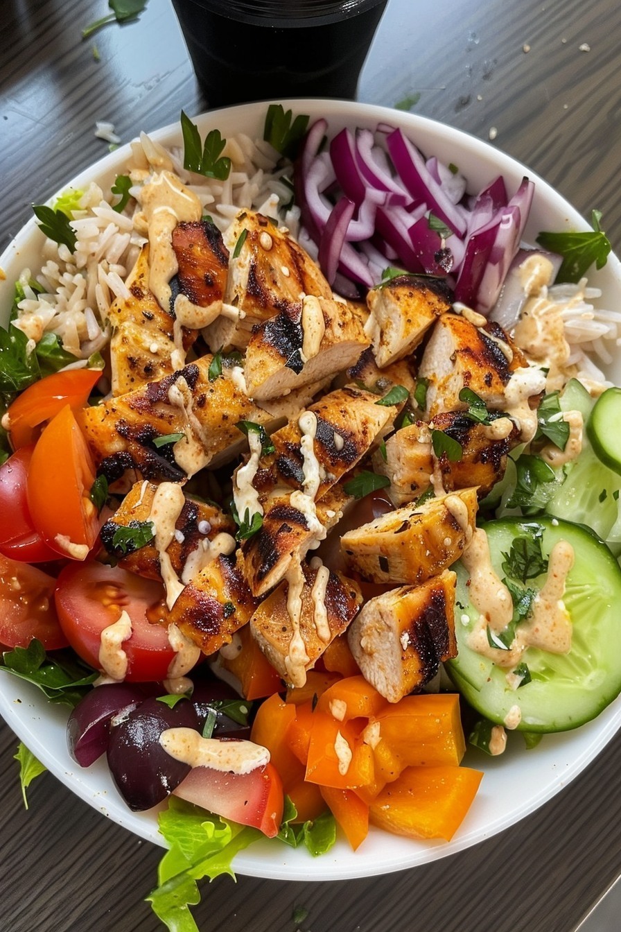 Ingredients For the Greek Chicken: 1 lb boneless, skinless chicken breasts or thighs Juice of 1 lemon 2 cloves garlic, minced 1 tsp dried oregano 1/2 tsp salt 1/4 tsp black pepper 1 tbsp olive oilFor the Bowl Base: 2 cups cooked rice, quinoa, or cauliflower riceFor the Toppings: 1 cup chopped romaine lettuce or spinach 1/2 cup cherry tomatoes, halved 1/2 cup cucumber slices 1/4 cup … Read more