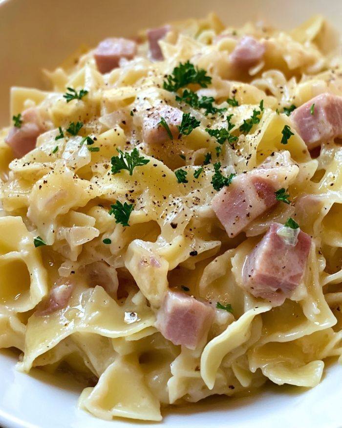 Haluski with Ham, Cabbage, and Egg Noodles