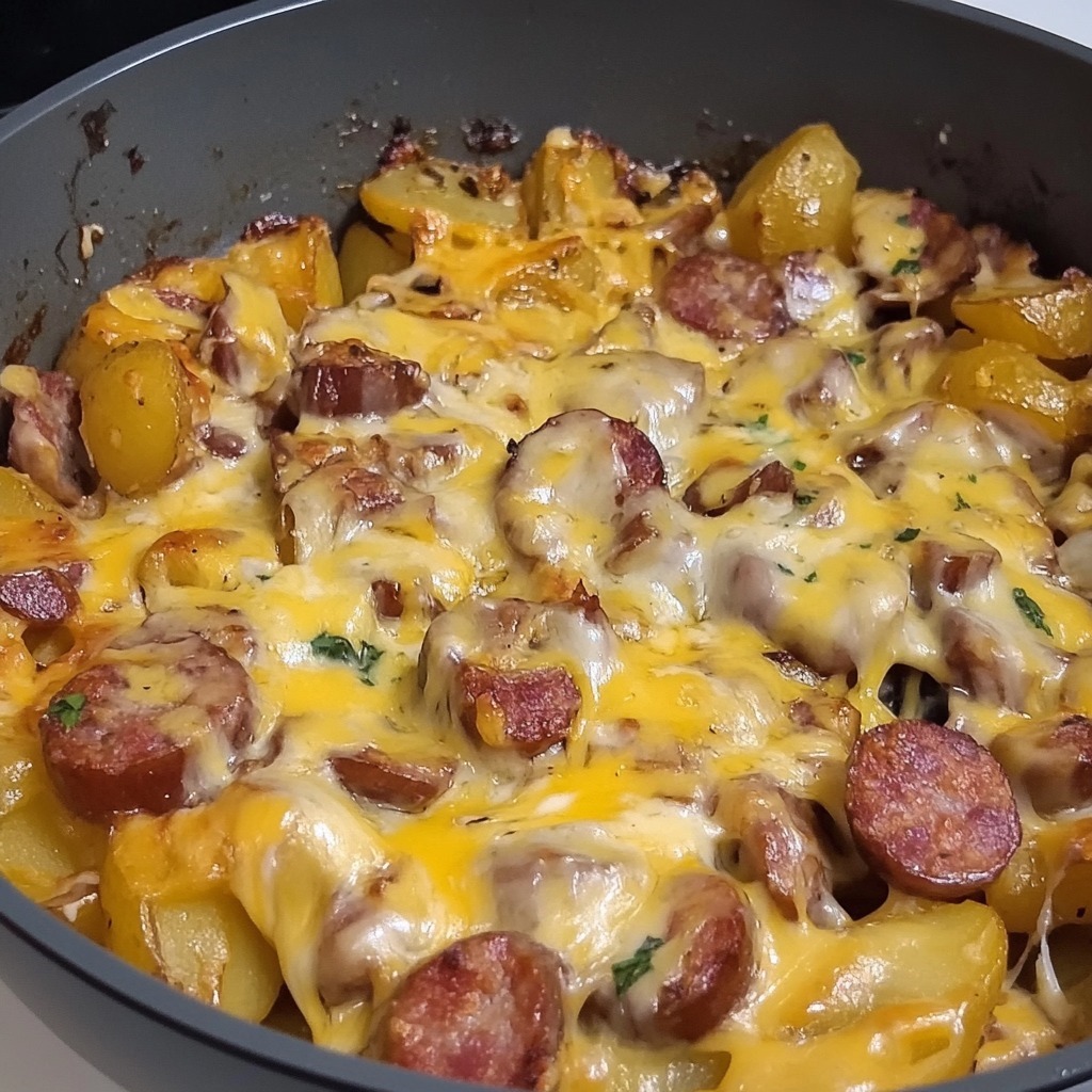 Crispy Potatoes, Smoked Sausage, and Melting Cheese