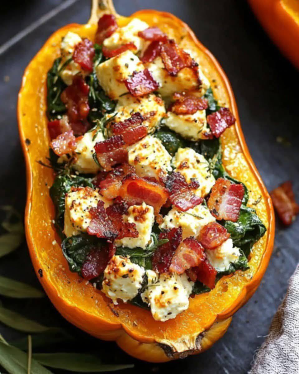 Stuffed Butternut Squash with Feta, Spinach & Bacon 🥓🧀🍂