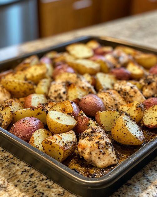 4-Ingredient Ranch Potato and Chicken Sheet Pan