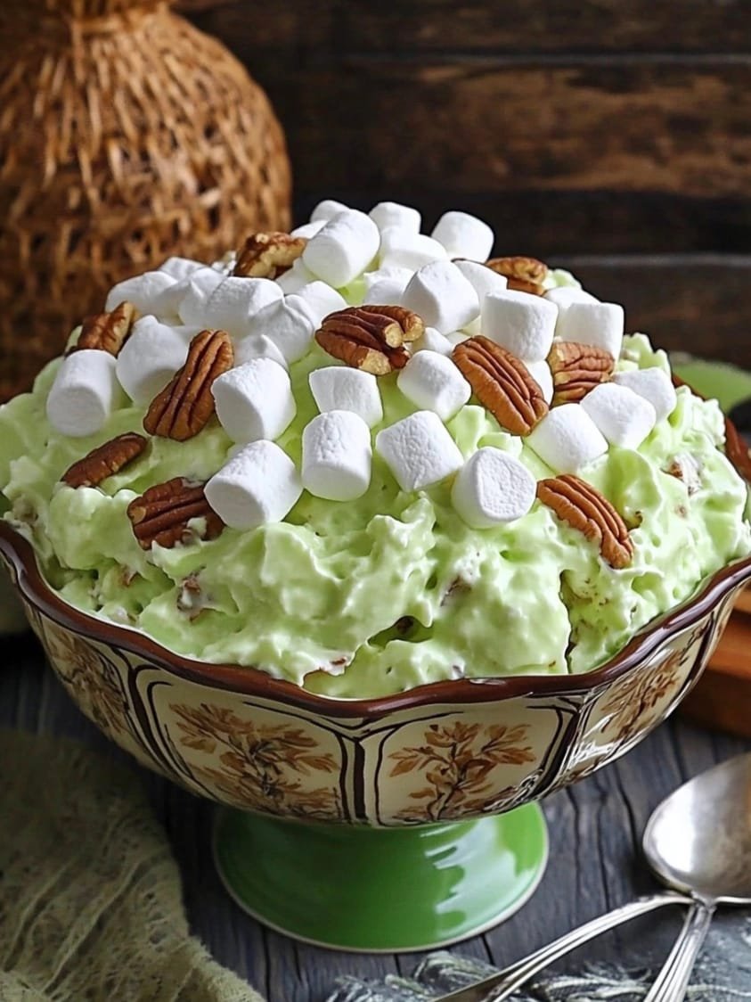 This Watergate Salad is a classic, easy-to-make dessert that’s light, fluffy, and bursting with flavor! Imagine a delightful mix of creamy pistachio pudding, sweet pineapple, fluffy marshmallows, and crunchy nuts – it’s the perfect sweet side dish or dessert for any occasion.
