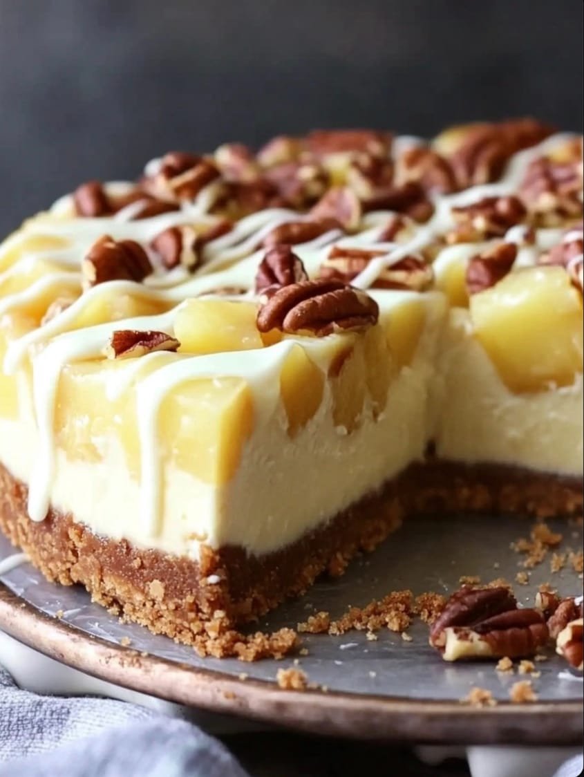 White Chocolate Pineapple Pecan Cheesecake